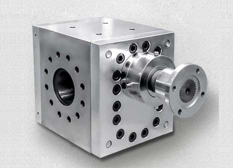 熔體計(jì)量泵屬于容積式齒輪泵,采用一對(duì)外齒合的圓柱齒輪(直齒、斜齒、人字齒)相對(duì)轉(zhuǎn)動(dòng)來運(yùn)輸送高黏度的流體。所有齒輪和配合面都經(jīng)過精磨、并嚴(yán)格控制裝配間隙來獲得精確的流量。齒輪和泵體根據(jù)不同的共況,HNP系列采用鉻鎳合金鋼、高溫工具鋼材料;HNP系列采用進(jìn)口CPM工具鋼或鈦鉭合金材料,整體淬火,硬度HRC62-68,耐磨性好。